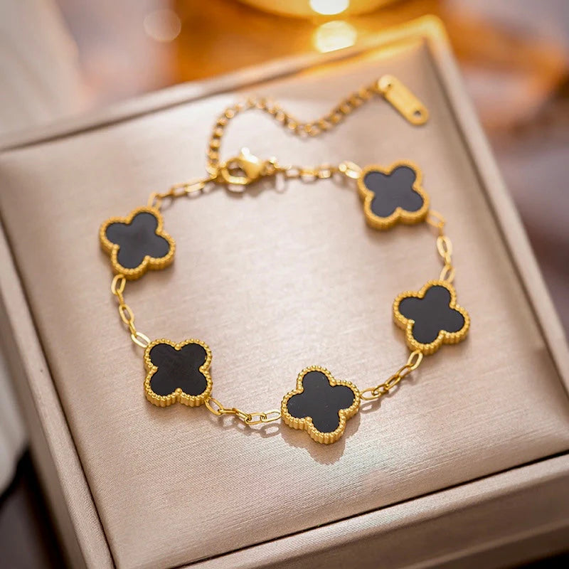 This elegant Black Clover Bracelet is perfect for both office and daily wear. Its Anti-tarnish finish ensures its beauty will last for years. A perfect accessory for any occasion, the Kinsley Clover Bracelet adds a refined touch to your outfit.